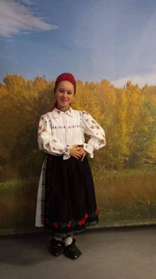 Ma numesc Cipriana Pătălău si am 15 ani sunt in clasa a VIII-a B la Liceul Tehnologic Nr.1 Popesti. Vin din satul Varviz comuna Popesti judetul Bihor iar costumul meu reprezinta valea bistrei si care este alcatuit din poale,zadie,spacel,camasa si carpa in cap.